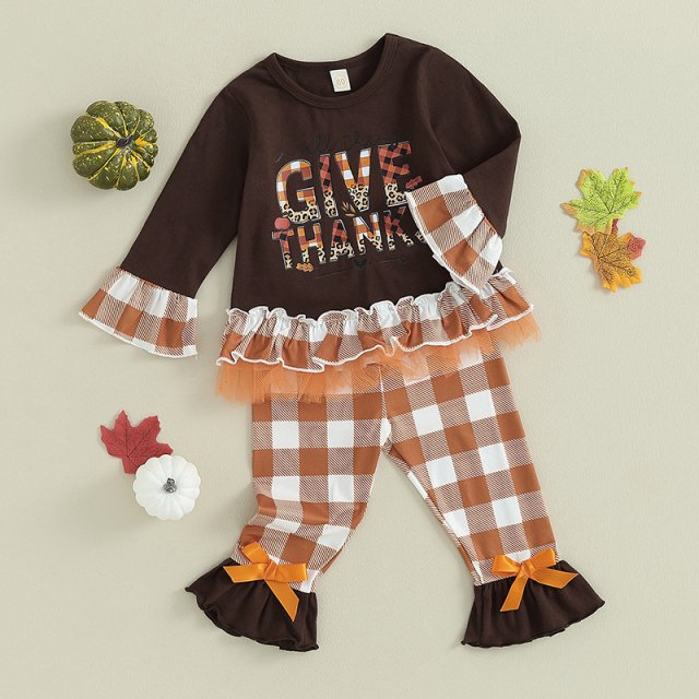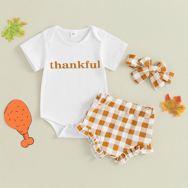 Baby Thanksgiving Outfit Set – Turkey Embroidery Romper & Letter Print Pants