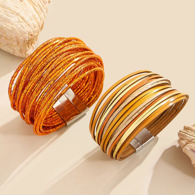 Bohemian Orange Leather Wrap Bracelet for Women