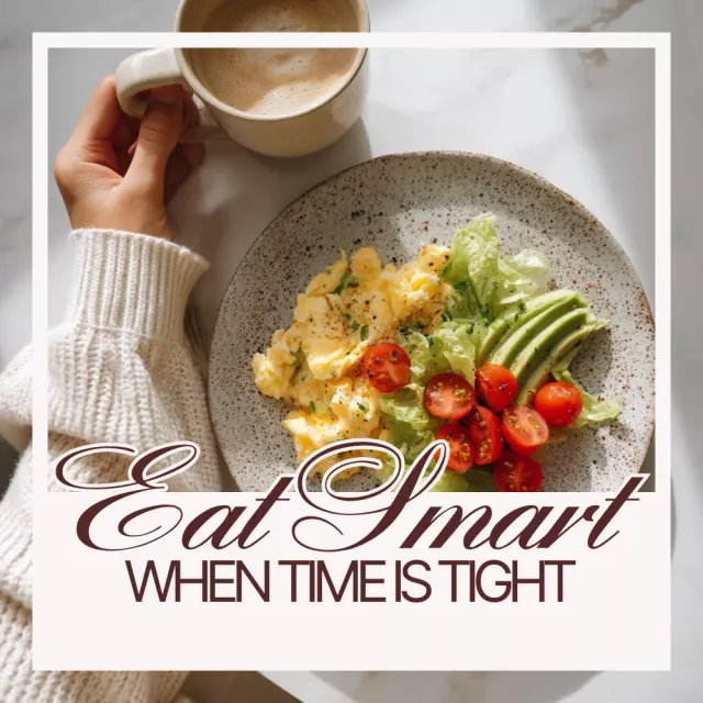 • Balanced meal ideas for busy schedules, including protein, carbs, healthy fats, and veggies