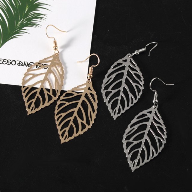 Elegant Hollow Leaf Drop Earrings for Women – Vintage Gold & Silver Dangle Jewelry