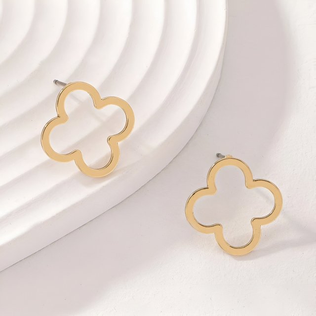 Bring a touch of effortless charm to your outfit with these Gold Plated Hollow Plum Blossom Clover Drop Earrings. Designed with a delicate four-leaf clover silhouette and airy hollow structure, these earrings strike the perfect balance between simplicity and elegance. Whether you’re dressing up for a special occasion or adding a hint of sparkle to your daily style, these earrings are your go-to accessory for a refined yet playful look.