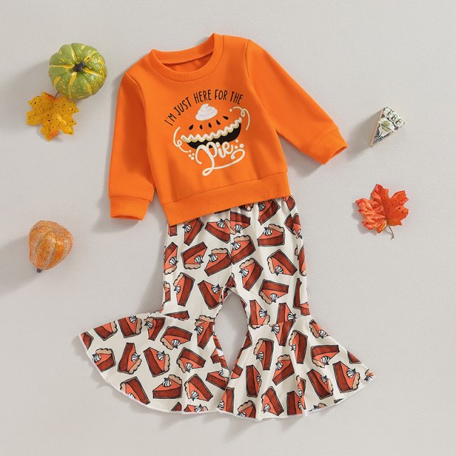 Kid Girls’ Long Sleeve Sweatshirt and Flare Pants Set – Adorable Outfit