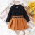 Kids Fall Outfit Long Sleeve Top with Pleated Skirt & Belt Set