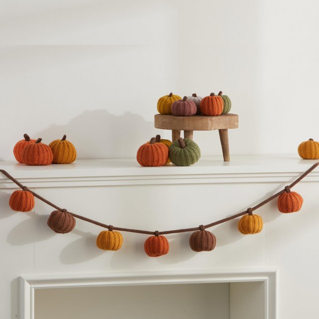 Knit Pumpkin Garland – Cozy Fall Decor Banner