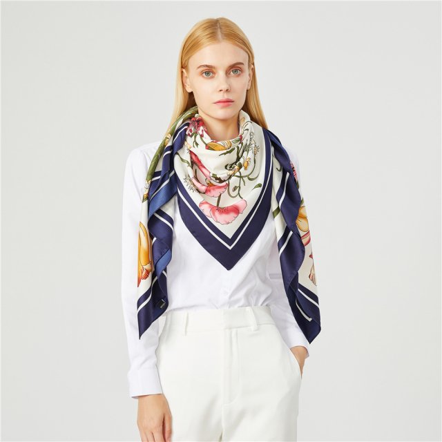 Luxury 51-Inch Floral Silk Square Scarf for Women