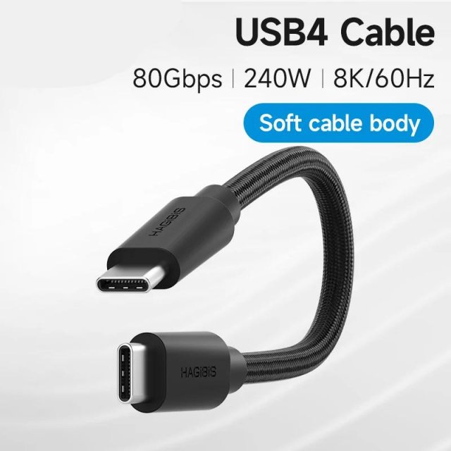 USB4 Cable with Vertical Plug – 80Gbps 240W PD3.1 Short Type-C Cable